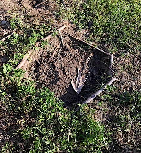 Use large sticks and branches to form some structure inside the hole, as well as a natural, unobtrusive but visible border around the top.