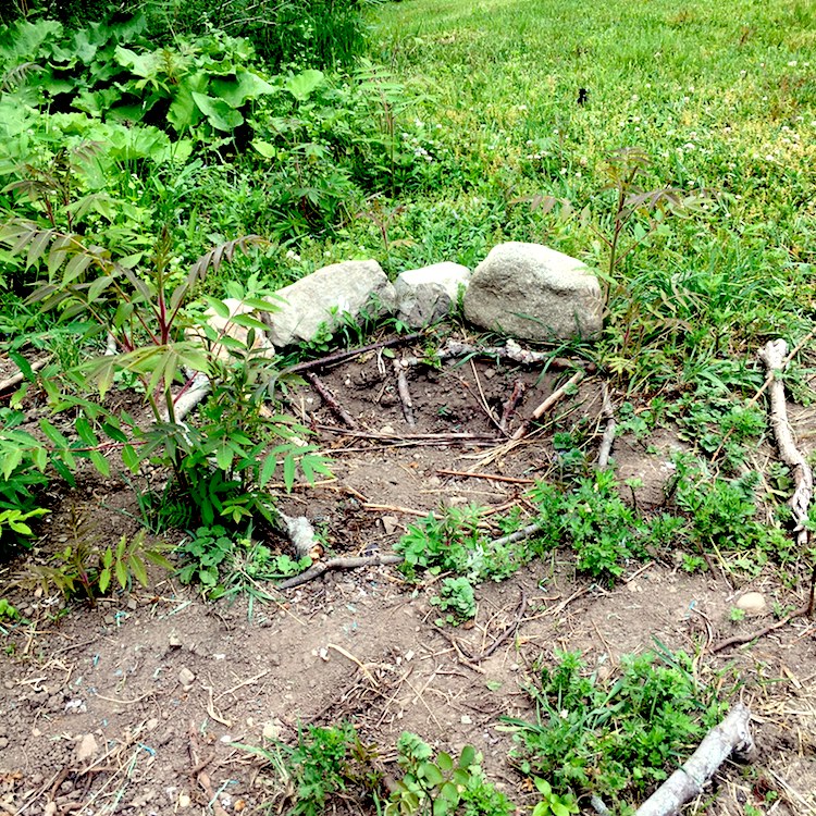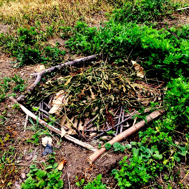 Line the bottom of the hole with a solid layer of twigs, sticks, branches to form the base.